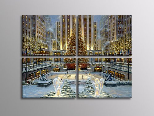 Check Here for Customer Reviews and Buy with Special Price 4HD2747 Christmas New York Ice Rink Lights Art 32x24 SECTIONAL FRAMED CANVAS Print