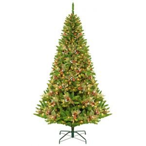 7.5' Pre-Lit Green River Spruce Medium Artificial Christmas Tree - Clear Lights - Mixed, crush resistant lifelike foliage features green PE tips mixed with green PVC tips on the inside to create a nice full look