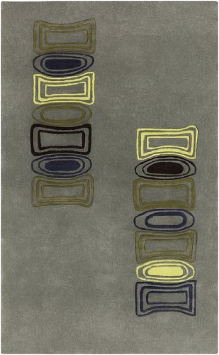 8' x 11' Gemello Stacks Gray, Avocado and Blue Hand Tufted Area Throw Rug