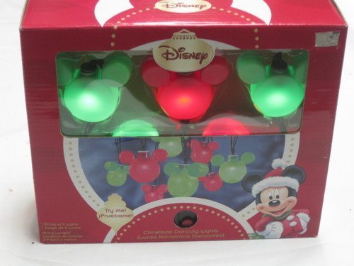 Disney Mickey Mouse String Lights Christmas Light Set 8 Blinking or Steady - This is a box of 8 red and green Disney "Mickey Mouse" ears string lights.1 string of 8 lightsString length: 8 feet2 light effects: blinking & steady glowMotion activatedRequires 3AA batteries (Demonstrator batteries are included, but will need to be replaced.)For indoor use only