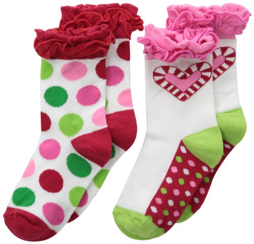 Jefferies Socks Girls 2-6X Ruffle Christmas Socks 2 Pair Pack, Candy Cane/Dot, Small - Hop into the holidays with these ruffle christmas socks, see style 2676 for baby gift box