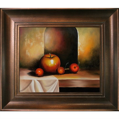 overstockArt Apples On a Sideboard with Da Vinci Canvas Art, Aged Auburn Finish - 20" X 24" Oil Painting On Canvas This is a remarkable oil painting with exceptional use of color, detail and brush strokes. This oil painting has a delightful setting that is sure to bring many admirers. Frame Description: Da Vinci-Aged Auburn Finish.