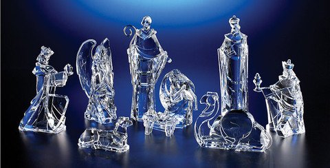 From the Icy Crystal Christian Spirit CollectionFigures depict the Three Kings, a shepherd, Joseph, Jesus, a camel, a lamb and an angel, all with the elegance of ice sculpturesDimensions: 9"H