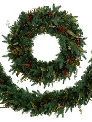 24" Balsam Hill Autumn Harvest Artificial Christmas Wreath - LED Lights - The 24 inches Autumn Harvest Wreath highlights the colors of fall with its verdant foliage, natural pinecones and red berries. This artificial wreath perfectly complements any Christmas tree and makes for a wonderful table centerpiece. Comes with Clear LED lights.
