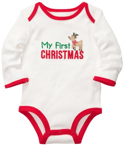 Carter's Baby Long-sleeve Christmas Bodysuit (NB-24M) (9 Months, White) - This bodysuit is the best for baby's first Christmas. The cute holiday graphics will be perfect for photo taking or family gatherings. Expandable shoulders for easy over-the-head dressing