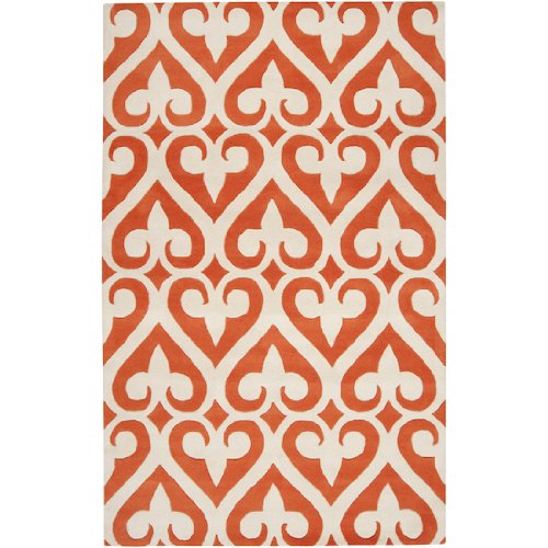 Check Here for Customer Reviews and Buy with Special Price 5' x 8' Spades White and Orange-Red Wool Area Throw Rug