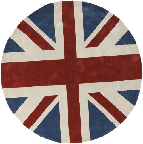 Check Here for Customer Reviews and Buy with Special Price 8' British Flag Red, White, and Blue Hand Tufted Polyester Round Area Throw Rug