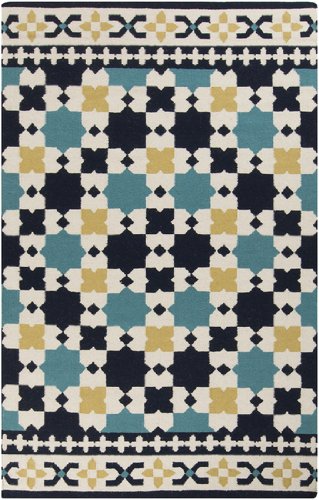 Check Here for Customer Reviews and Buy with Special Price 8' x 11' Ornate Square Indigo and Tan Reversible Hand Woven Wool Area Throw Rug