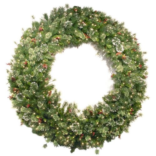 Decorative Christmas Wreath with Clear Lights - Decorative Christmas Wreath with Clear Lights. Wintry Pine Wreath is the perfect decoration for your doorway. Our wreath is decorated with cones, red berries, and snowflakes with clear UL-listed lights. This fire-resistant and non-allergenic wreath will be a perfect fit for any home, and is good for i